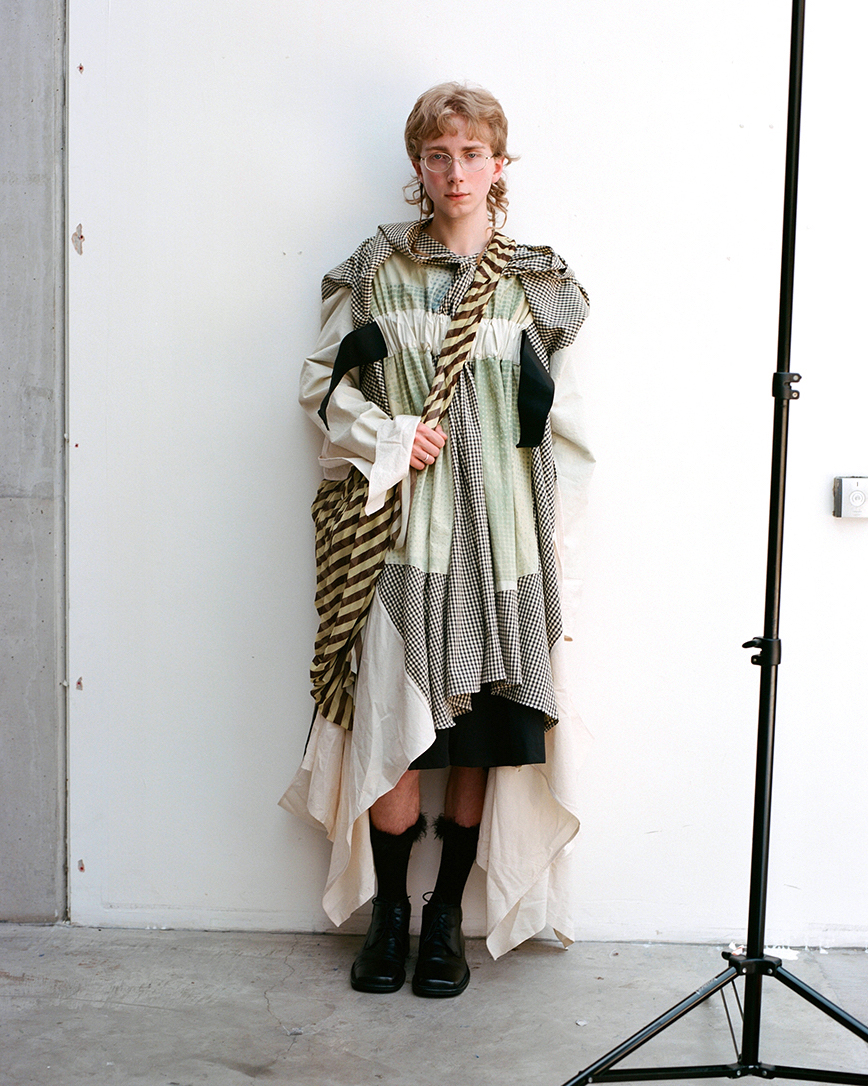 'Count to Twenty!' is about playing hide and seek with menswear and masculinity through a sheet of fabric. This collection is a study of re-identifying menswear archetypes by hiding and revealing details. It’s to question very fundamental questions about menswear: what makes man look "manly"? what makes menswear look stereotypical "menswear"? I developed near-zero-waste designs throughout the looks by using one full sheet of fabric, to explore and develop sustainable practice and new silhouettes and details in menswear. A story of a sheet of fabric, interfering and communicating with mens body and masculinity.