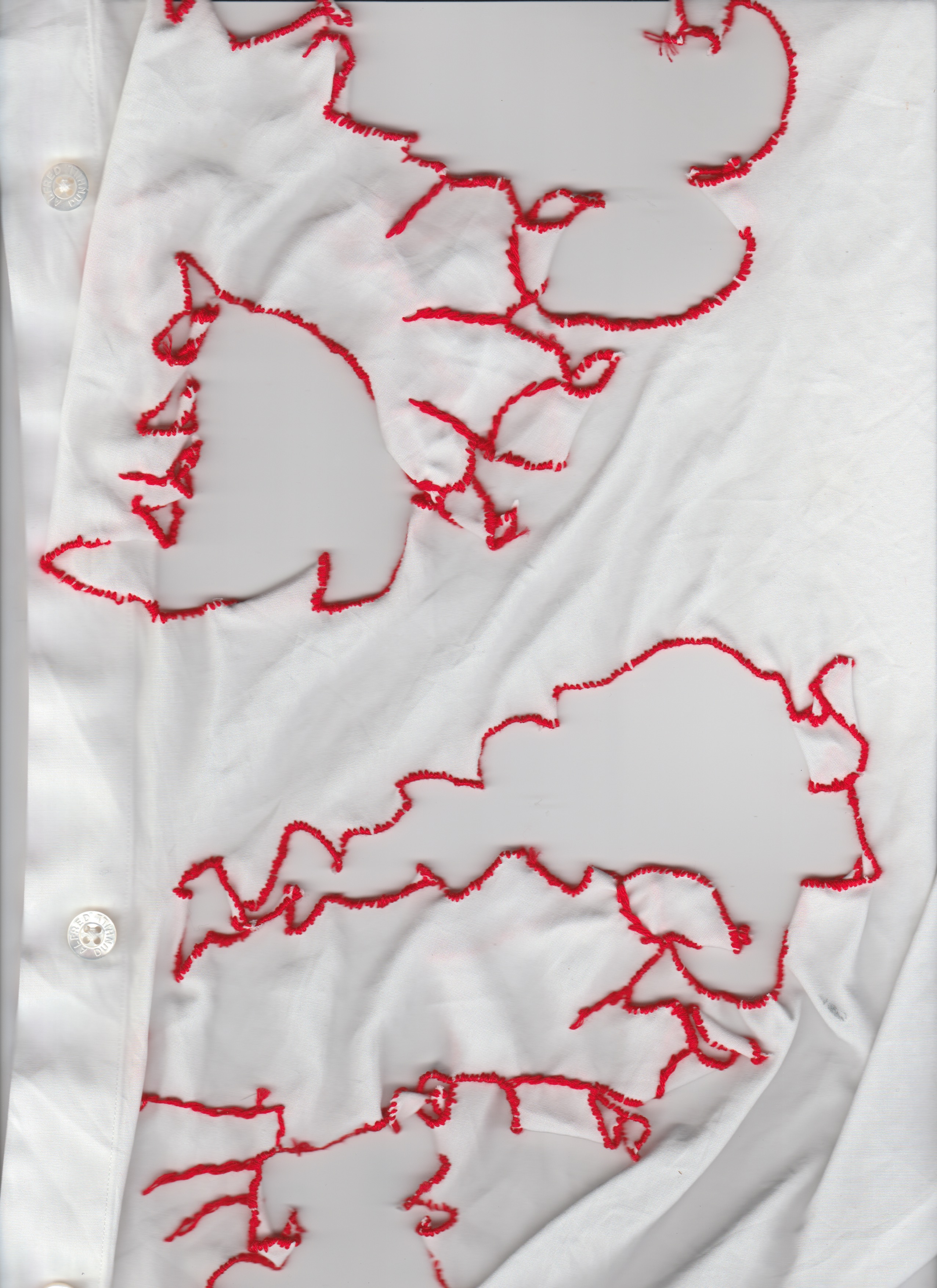 Cut out and embroidered the lion from the Royal Coat of Arms of the U.K. on a second-hand shirt.