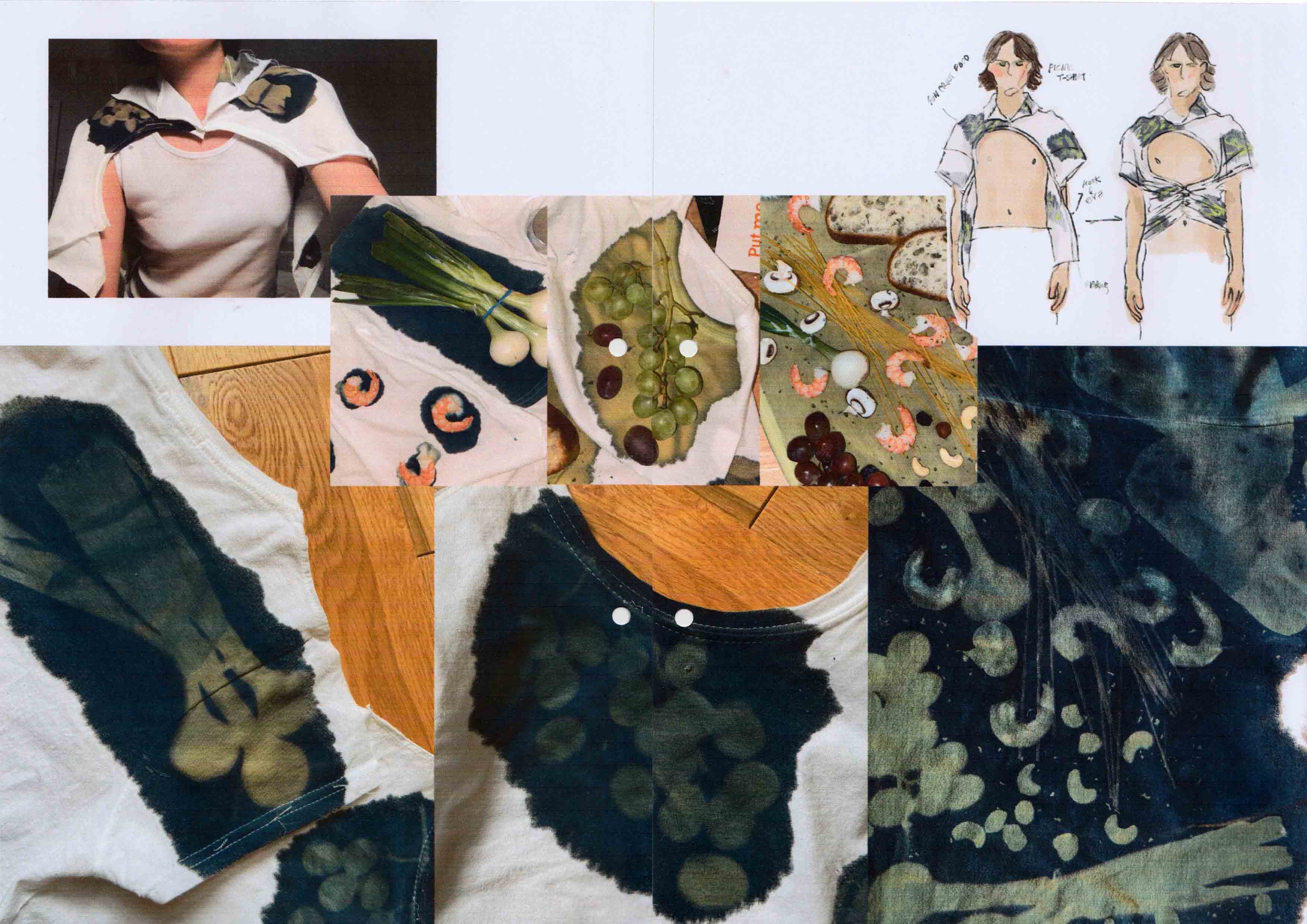 Experiment with stuff that is not mine, such as random film negatives from eBay, mundane objects and groceries on t shirts from charity shop.